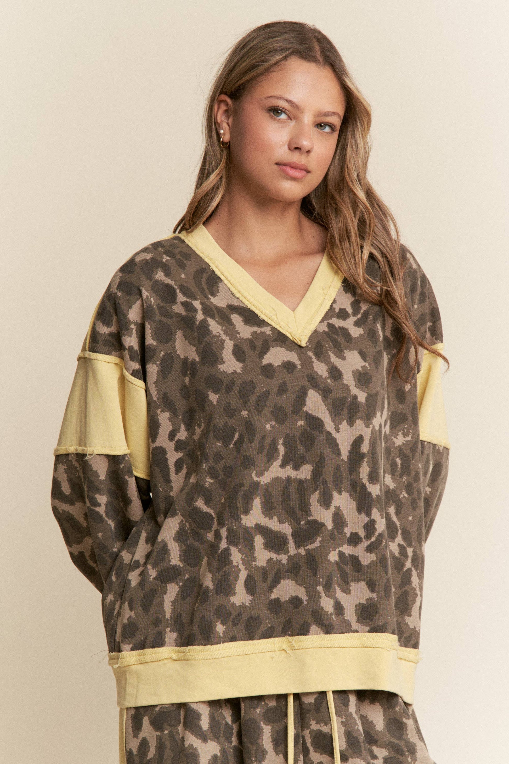 Leopard and Olive V Neck Sweater